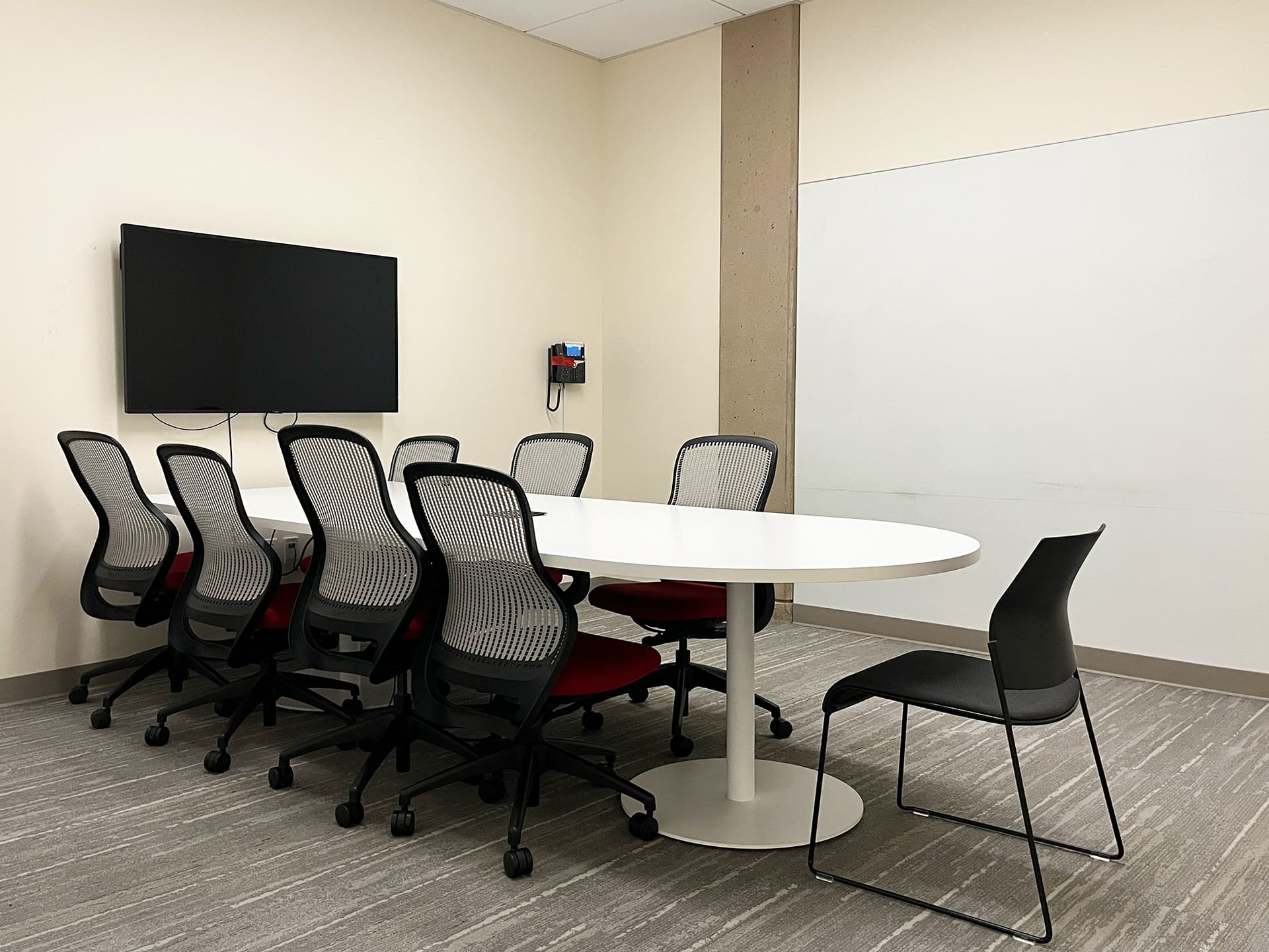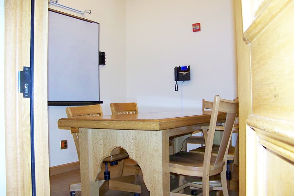 Photo | Richard B. Hooper '37 Group study room Room-205b 2-4 people | Library Cecil H. Green Library | Open/Closed | Features Features: Conversation space, Large monitor (30 x 55 in.), Whiteboard Reserve space at Cecil H. Green Library |